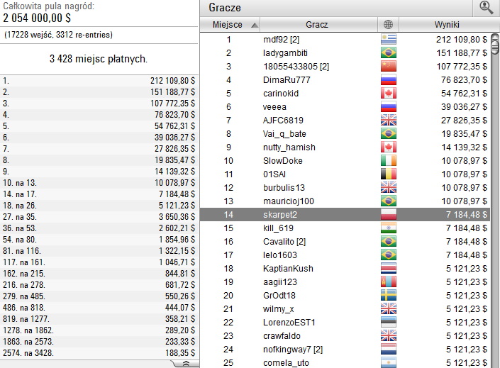 Ja sam humor po prasowym bad beacie poprawiłem sobie dość szybko, kilka dni później odnosząc swój najlepszy pokerowy wynik, czyli zajmując 11 miejsce w Sunday Million . Jak się jednak okazało nie był to zwiastun pokerowej pomyślności w nowym roku i pomijając to wydarzenie reszta roku w moim wykonaniu była byle jaka, okresy downswingu przeplatały się z okresami lekkiego wzrostu, ale więcej ciekawych wyników już nie było.